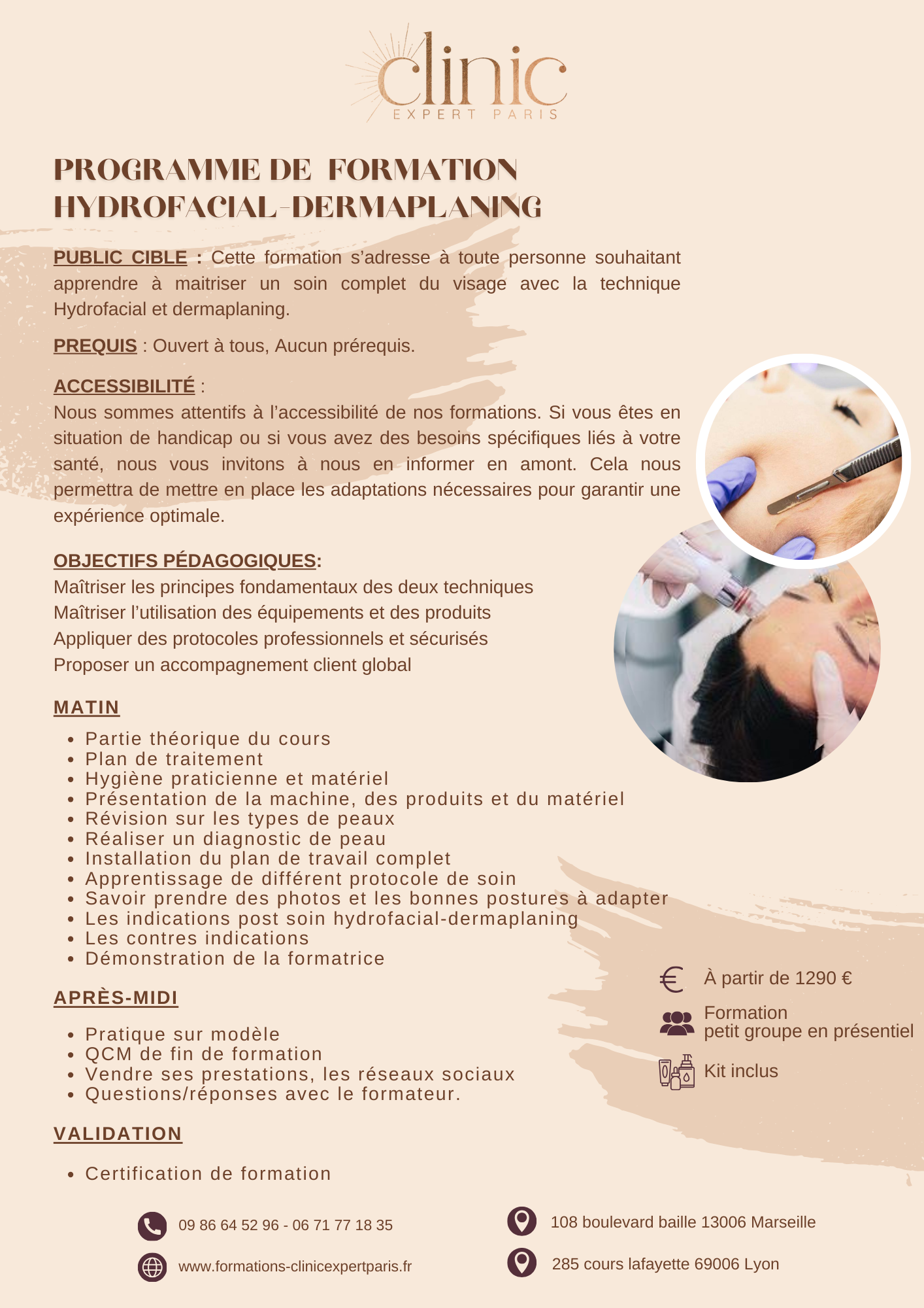 Tous les produits (sérums, lotions, etc.) sont fournis pendant la formation