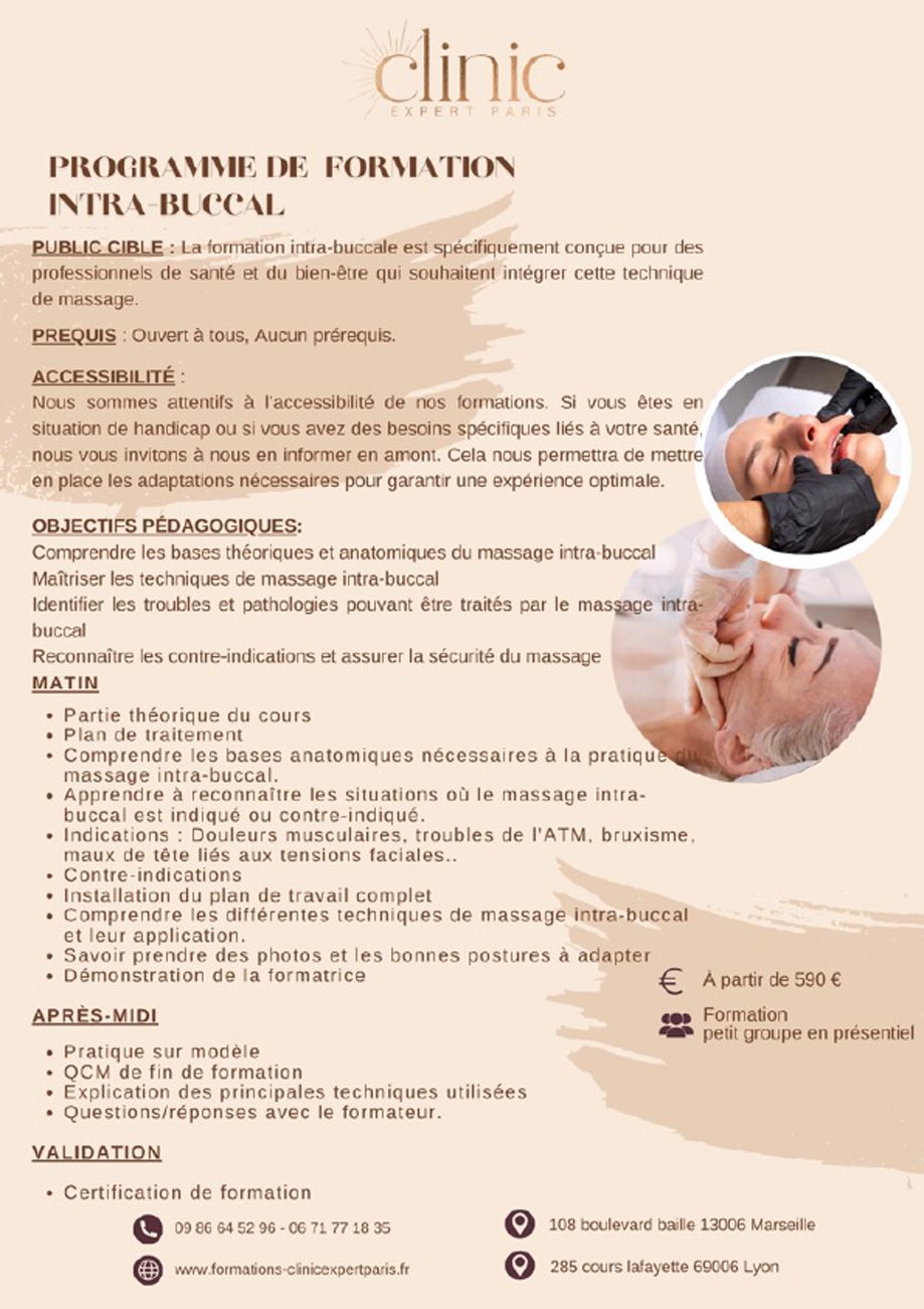 - Maîtriser les techniques internes et externes du massage intra-buccal